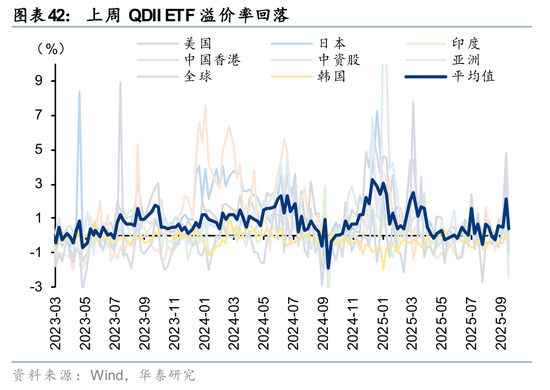 QDIIETF上周净流入163亿元,主要净流入中国香港。从溢价率来看,QDII ETF溢价率环比回落。