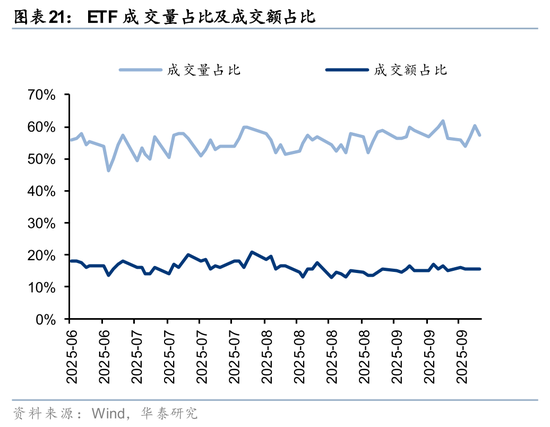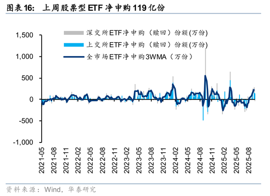 上周股票型ETF净申购119亿份,净流入190亿元,其中宽基ETF净流出188亿元。分板块来看,大金融、周期板块净流入规模居前,行业中有色金属、银行、非银行金融等行业净流入居前。7月中旬以来场内ETF成交额中枢提升至2000亿元,相比25H1(1000亿元)有所回升。