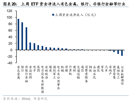 ETF:上周股票型ETF净流入190亿元,宽基ETF净流出188亿元,行业中有色金属、银行、非银行金融等行业净流入居前。
