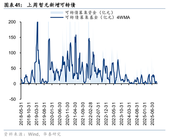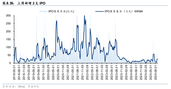 上周一级市场募资金额环比回落。上周新增IPO 2支,募资9.28亿元;上周新增定增4支,募资80.24亿元,暂无新增可转债。