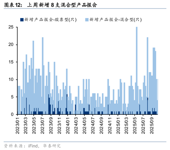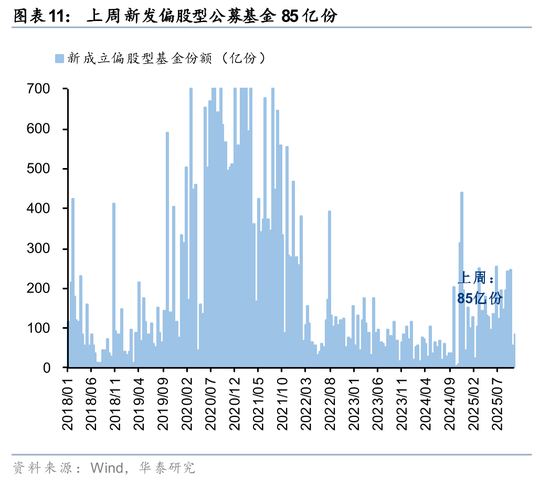 上周新成立偏股型基金85亿份,新发强度小幅回升,存量基金中,股票/混合基金权益仓位环比小幅回升。