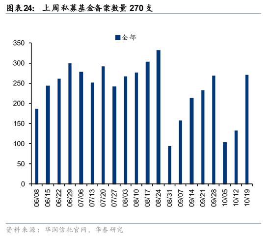 私募:上周,私募证券备案数量270只,备案数量环比回升。